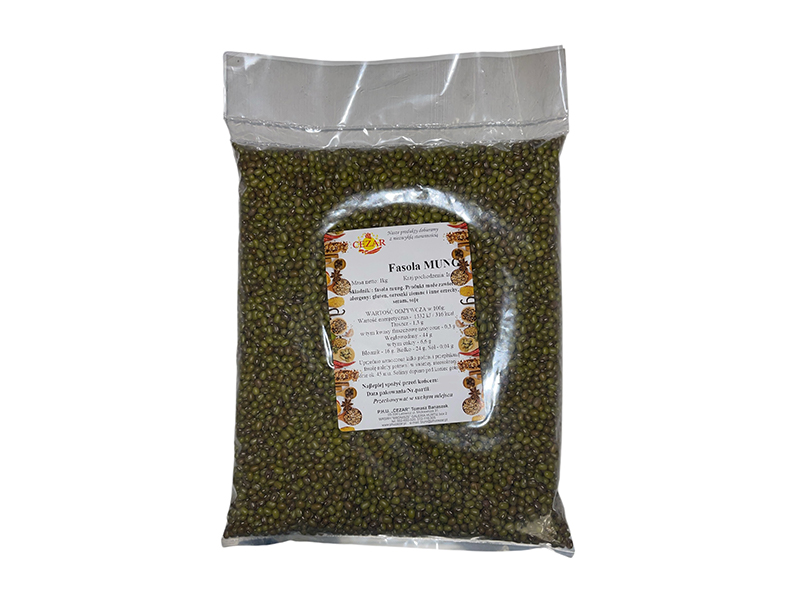 Fasola mung to małe, zielone ziarna o delikatnym, lekko orzechowym smaku. Znana i ceniona w kuchni azjatyckiej, świetnie sprawdza się w sałatkach, curry, zupach i pastach, a także do kiełkowania. Bogata w białko roślinne, błonnik, żelazo i potas, idealna dla wegan, wegetarian i osób na diecie wysokobiałkowej.