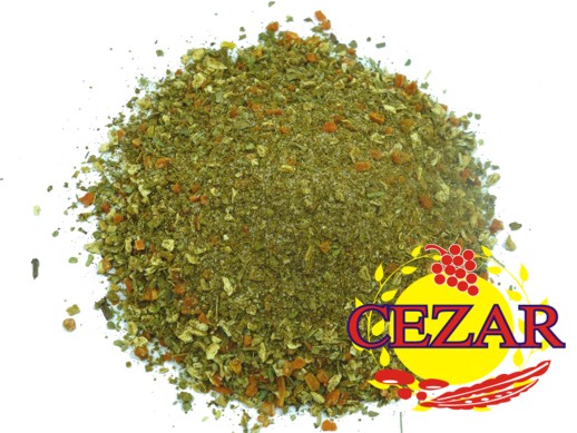 Sól, warzywa suszone (marchew, czosnek, cebula, pasternak, liście selera), papryka słodka, imbir, gałka muszkatołowa, gorczyca, cukier, pieprz czarny, chili, liście laurowe, kurkuma.