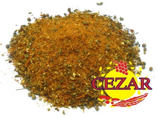 Papryka, czosnek, cebula, oregano, tymianek, rozmaryn, bazylia, pieprz, sól, cukier, kolendra, kminek, gałka muszkatołowa.